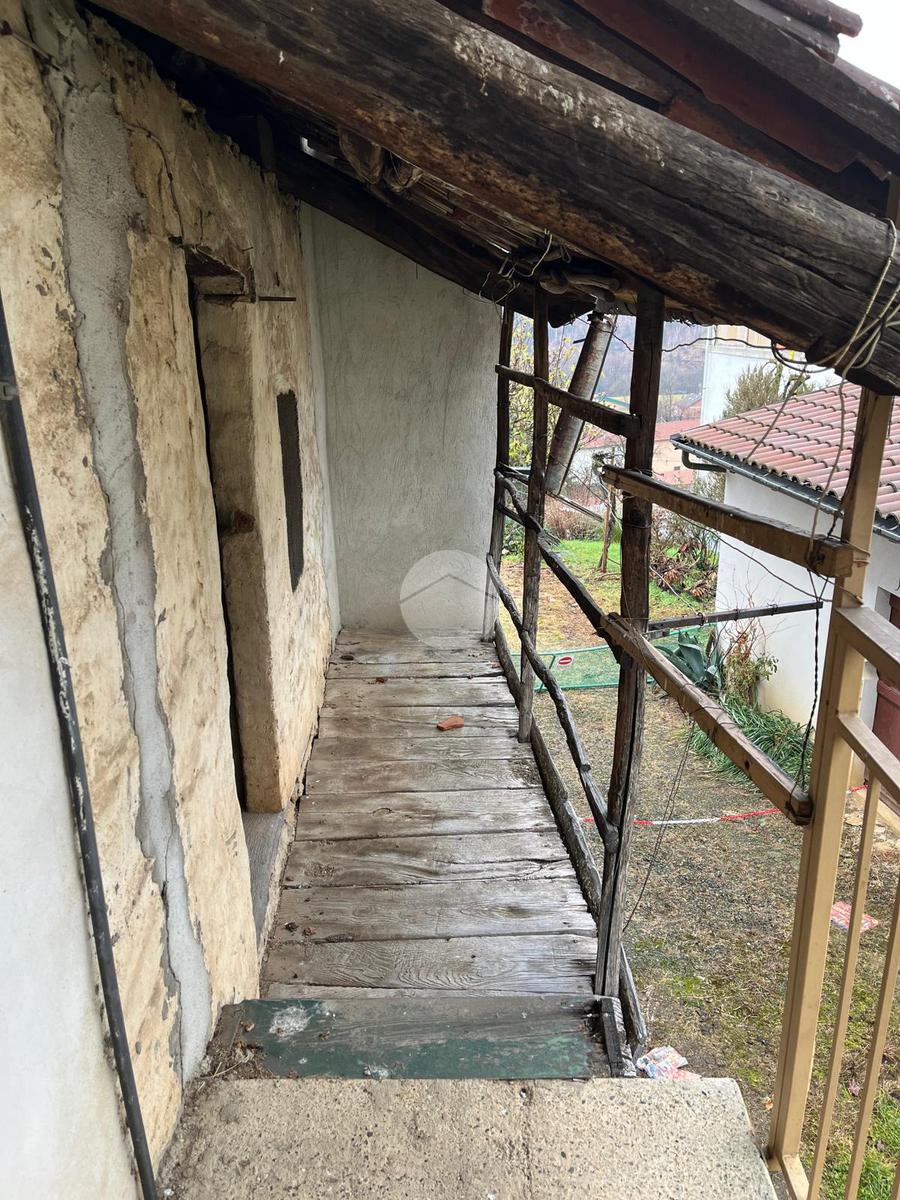 Rustico semindipendete libero su tre lati e sviluppata su due livelli. Al piano terra vi sono due locali e la cantina dal quale è possibile accedere all'esterno con un piccolo pezzo di terra privato. Accanto abbiamo poi il box vano sottotetto, con balcone ma si presenta ancora allo stato grezzo. Accanto, in corrispondenza del box auto sottostante, vi è poi un'altra locale che un tempo era adibita a granaio. La casa necessita di ristrutturazione ma vi sono già gli allacci a tutte le utenze: luce, acqua, gas metano e allaccio alle fogne comunali.
